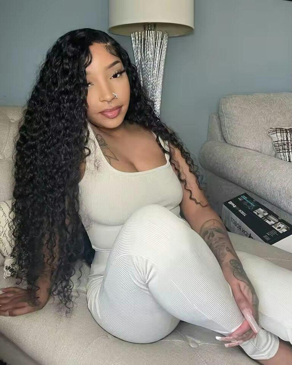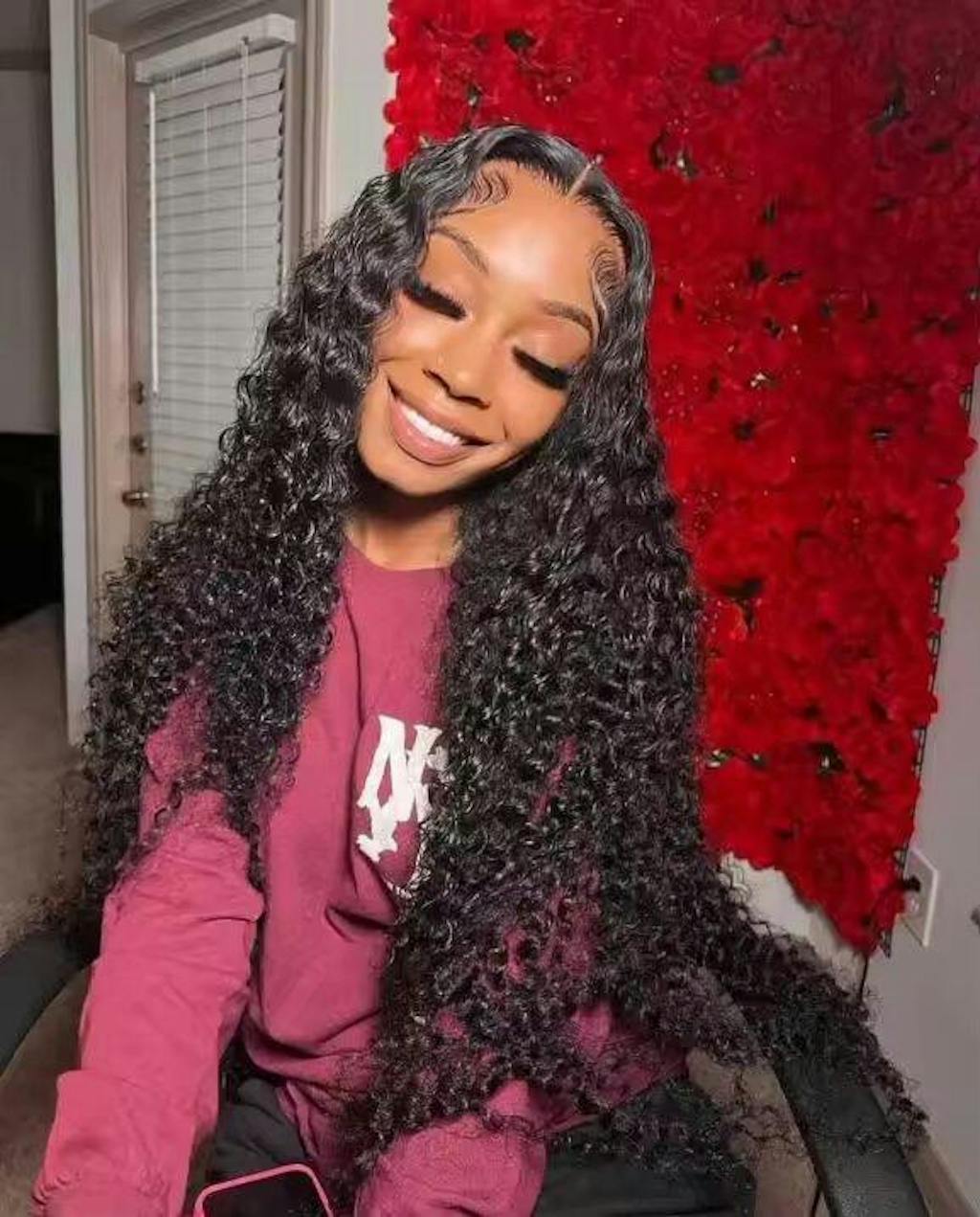 I fell in love with this hair. It makes me look very beautiful. The curly pattern is very prominent and does not tangle, let alone the length. Oh my god, it is long and beautiful, with a high density, and the lace is easy to melt. I want to reorder. Don't hesitate, this hair is everything a girl needs!