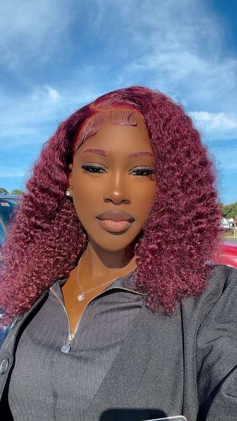 Item: Hairsmarket #99J Burgundy Color Burmese Curly Human Hair 1/3 Bundles 100% Human Hair Extension